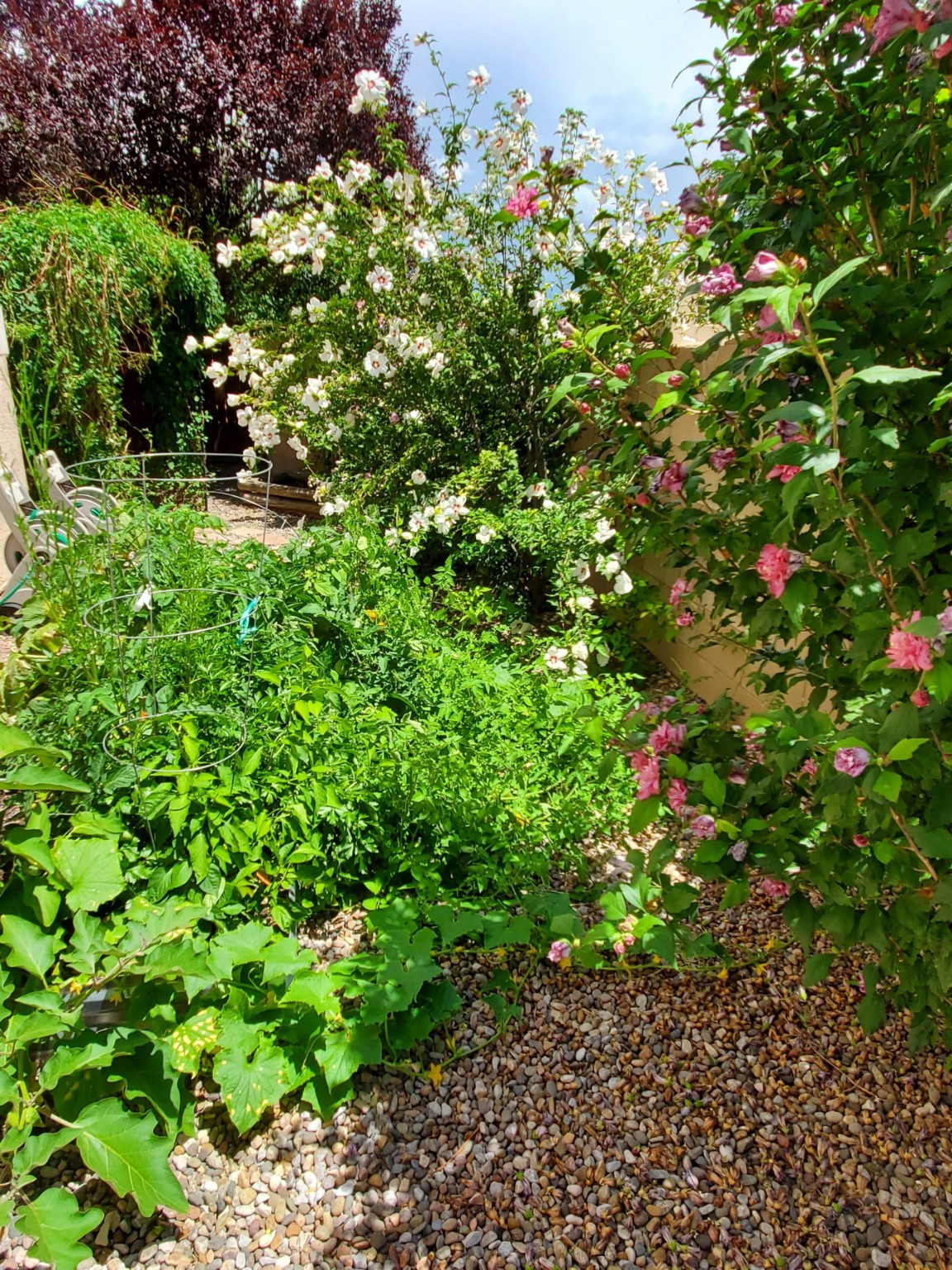 Well maintained and updated 2 story home on a corner lot with Sangre and sunset views. 3 bedrooms upstairs with 2 full bath rooms. Primary bedroom has access to roof deck. Downstairs includes a office/den, separate formal dining room, comfortable living room with a gas fireplace, and a well appointed kitchen with newer appliances and upgraded granite counter tops. Outside is a relaxing gem of an outdoor 'living' room complete with ceiling fans and room to bar-b-que. All the outdoor furniture conveys - including a water feature and fire pit. Numerous healthy fruit trees and rose bushes, front yard has 2 gorgeous heritage maple trees. Attached garage, newer washer and dryer, recently re-siliconed roof - this house is ready to move in and make your own!