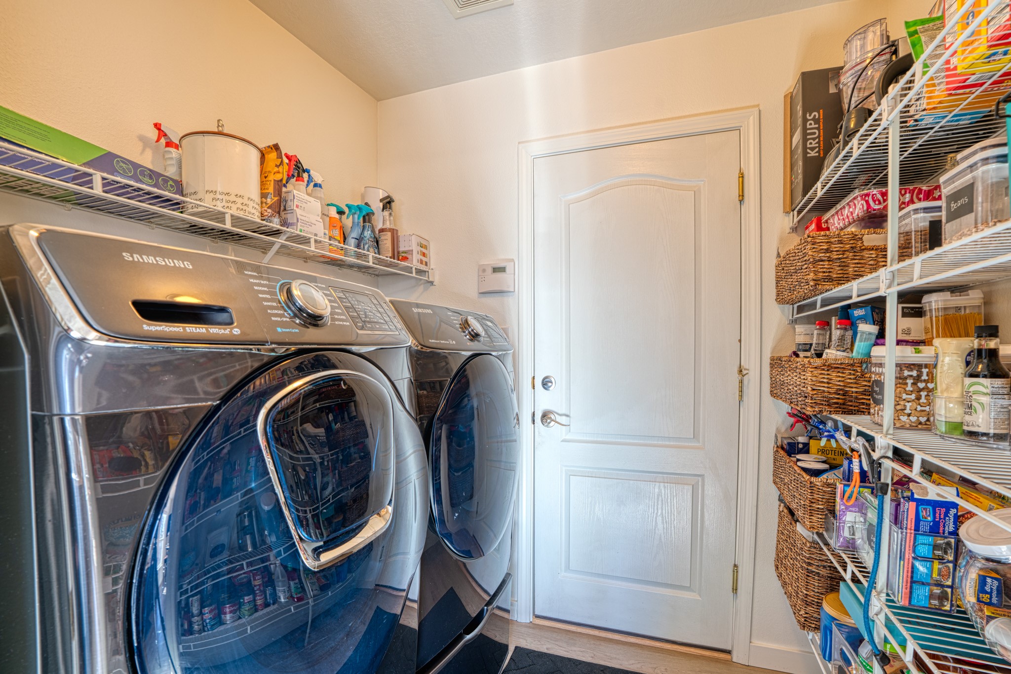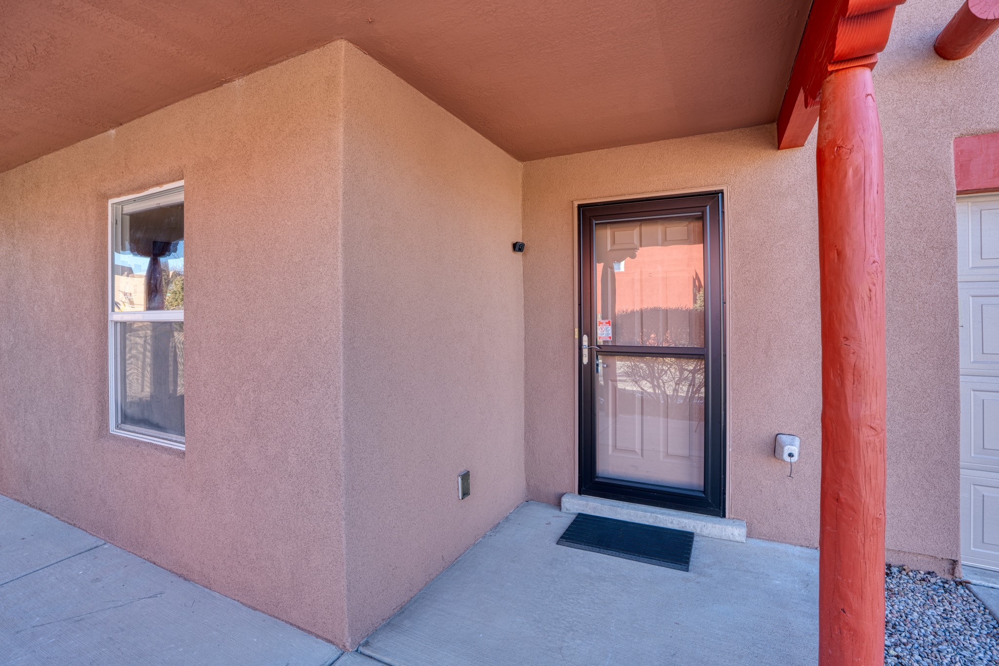 Discover this beautifully updated single-level home situated on a spacious corner lot, featuring 3 bedrooms, 2 bathrooms, a 2-car garage & 1,601 sqft of comfortable living space. This move-in-ready property showcases modern upgrades and timeless charm throughout. Recent improvements include a new TPO roof (OCTOBER 2024) and new stucco (2025), complemented by upgraded flooring, baseboards, recessed lighting, stylish ceiling fans, and freshly painted cabinetry. The living area offers tongue-and-groove ceiling with exposed vigas and beams, creating warmth and architectural character. The primary suite features a custom closet system with built-in drawers and shelving, an elegant accent wall, double vanity, garden tub, and standalone shower. Step outside and enjoy the covered/open flagstone patio space, a fully fenced yard, and a 10'x8' storage shed for added convenience. The oversized lot offers extra parking for convenience!