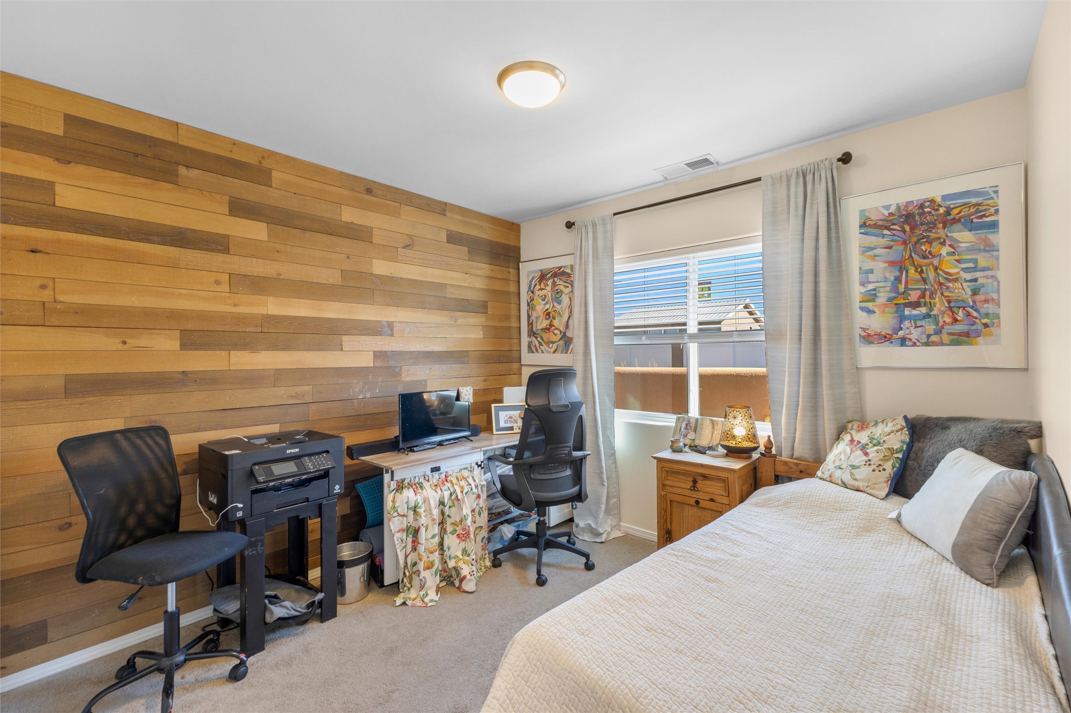 WAKE UP TO SWEEPING MOUNTAIN VIEWS FRONT AND BACK AND END EACH DAY WITH A GOLDEN SANTA FE SUNSET FROM YOUR PORTAL. This 3 bedroom, 2 bath Oshara Village townhouse pairs quality construction with Anderson windows and a TANKLESS water heater plus a modern design with a smart layout that separates the peaceful primary suite from the other bedrooms. Tile floors ground the living spaces, bedrooms are softly carpeted, and a galley kitchen with adjacent dining makes everyday living effortless. A beautiful sitting area overlooks a courtyard, while the xeriscaped backyard and lovely porch invite quiet mornings and serene evenings. Enjoy a walk in closet, double sinks, tiled shower, detached 2-car garage, AND hookup to graywater to water plants! Near Oshara Village Park and minutes to the Plaza via Richards or Rabbit, with favorites like Pantry Dos nearby! This is it! Call today!