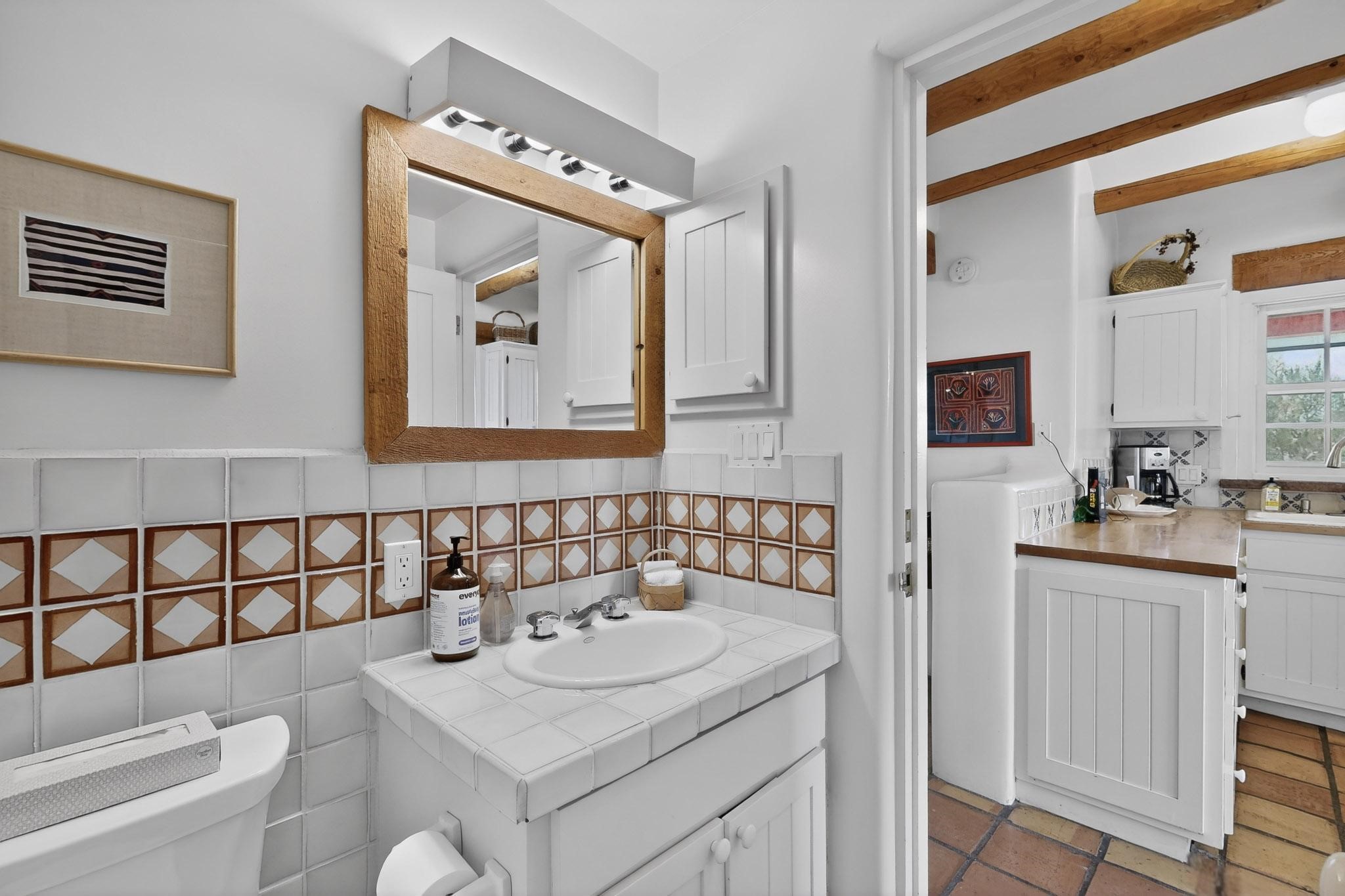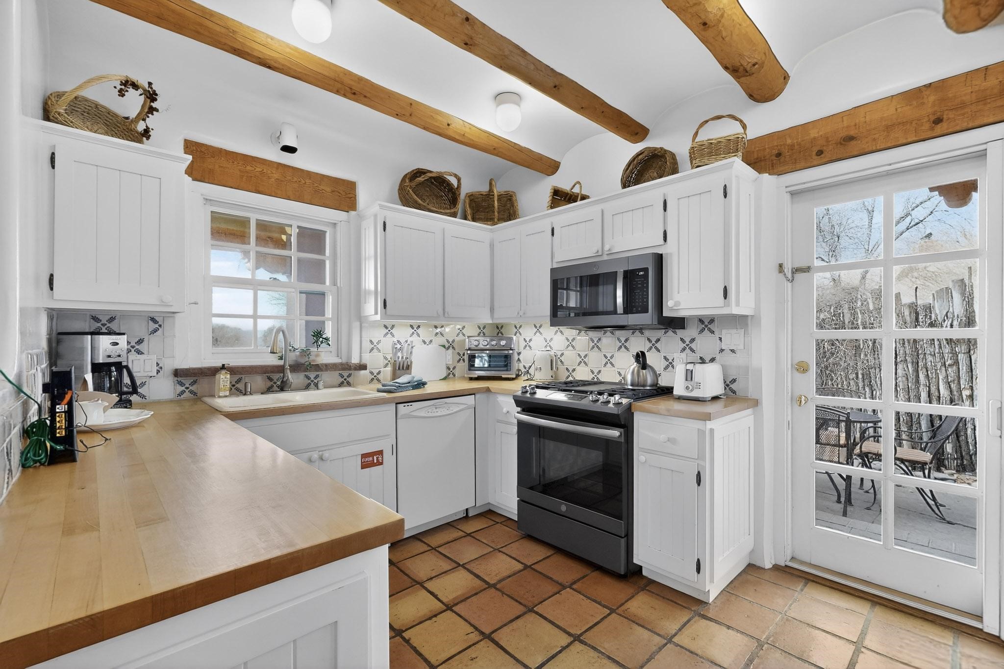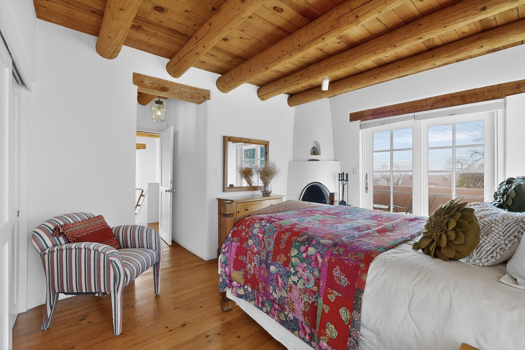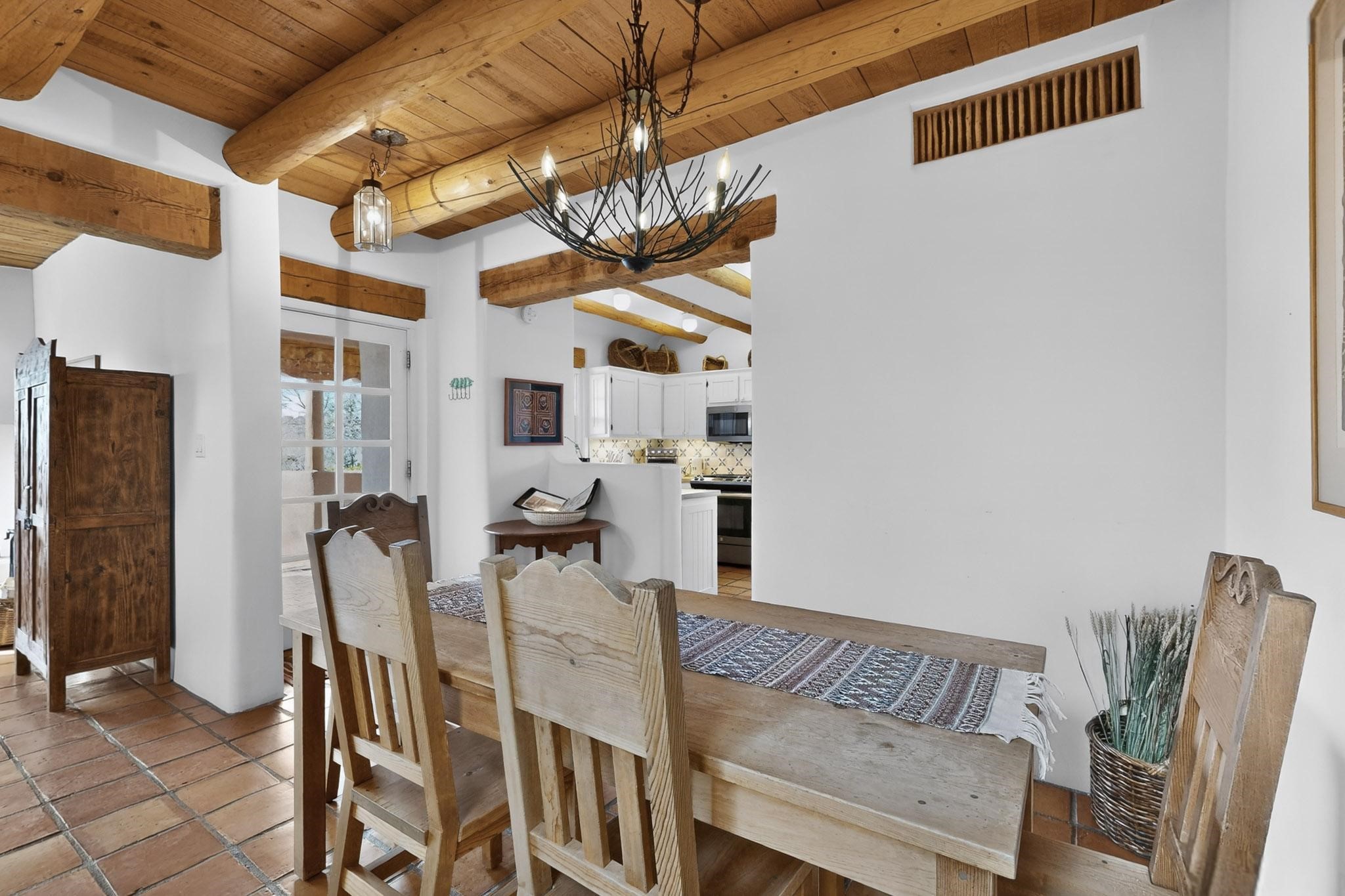 Charming condominium quarter ownership just a few blocks from the Plaza. Beautiful architectural details found in gracious old adobe home with vigas, kiva fireplaces, sculptural smooth plaster walls, hand adzed lintels above windows and doors. Tile kitchen and baths. All furnishings and maintenance, inside and out by Owners Association. Owners Association management operates established rental program.