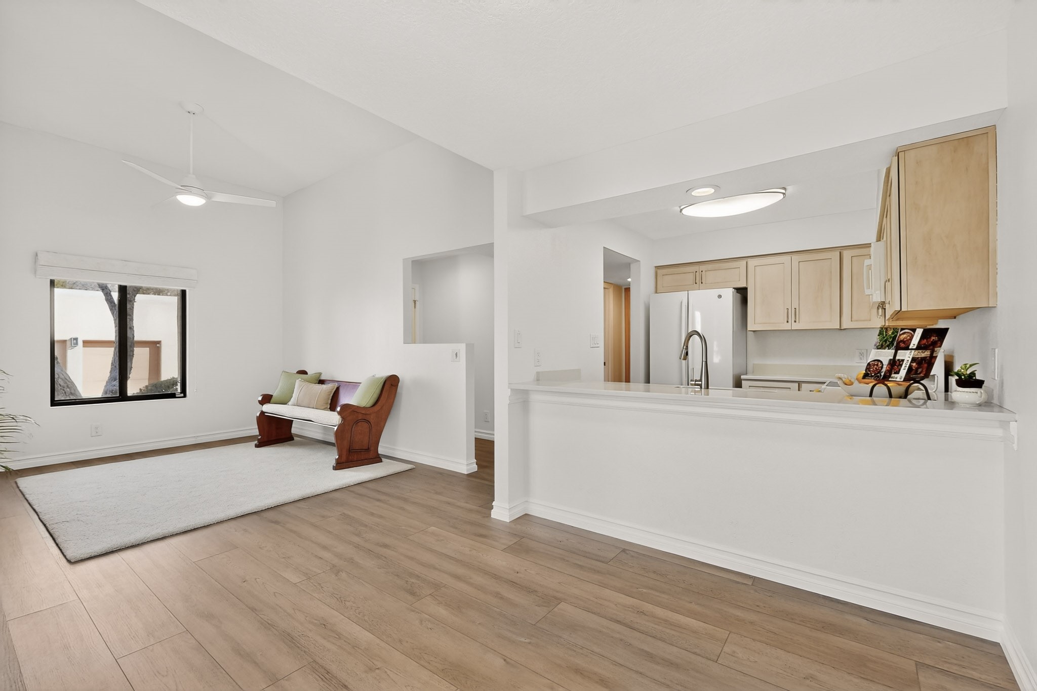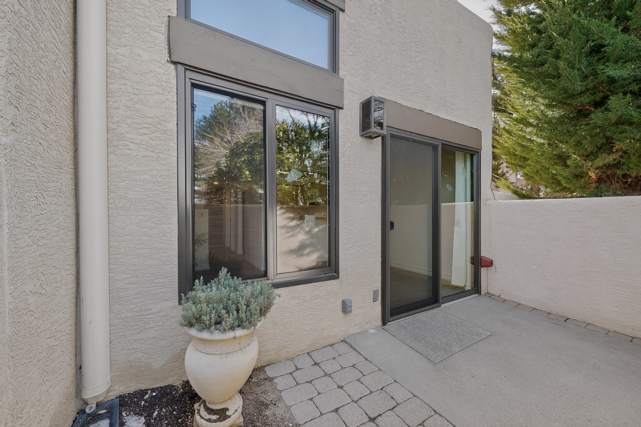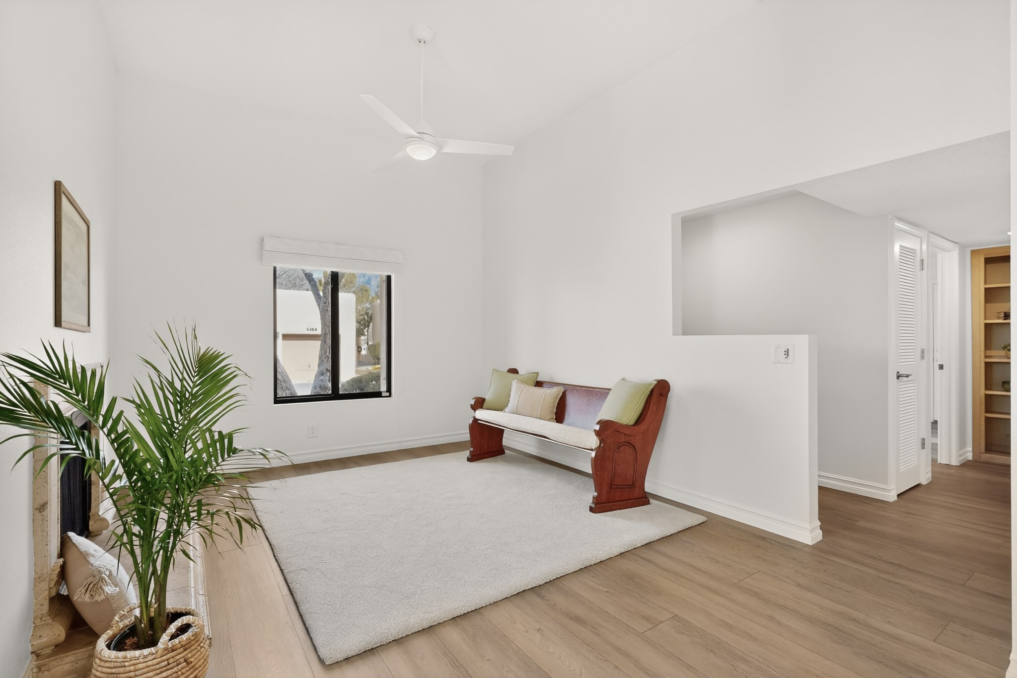 Nestled in Albuquerque's sought-after Far Northeast Heights, 6448 Monte Serrano NE is a beautifully updated Pueblo-styletownhome in the quiet El Paseo community. This move-in-ready residence seamlessly blends contemporary style with classic New Mexican charm.Step inside to discover a refreshed interior with designer-inspired finishes and updated flooring throughout. The spaciousliving area features a custom wood-burning fireplace, perfect for cozy evenings. The modernized kitchen offers sleek cabinetry, updated appliances, a breakfast bar, and a sunny dining nook. The primary bedroom and contemporary bathroom showcase updated fixtures and sophisticated finishes. Refrigerated air and a one-car attached garage add convenience and comfort.Outside, a private walled courtyard provides a low-maintenance sanctuary for outdoor dining and relaxation. El Paseo community amenities include a pool, clubhouse, and beautifully landscaped common areas.Ideally located with easy highway access and stunning Sandia Mountain views nearby, this home is minutes from Academy Hills Park and the Northeast Heights' premier shopping and dining destinations. A rare find for those seeking stylish, low-maintenance living in a prime location.