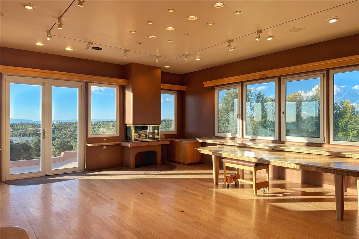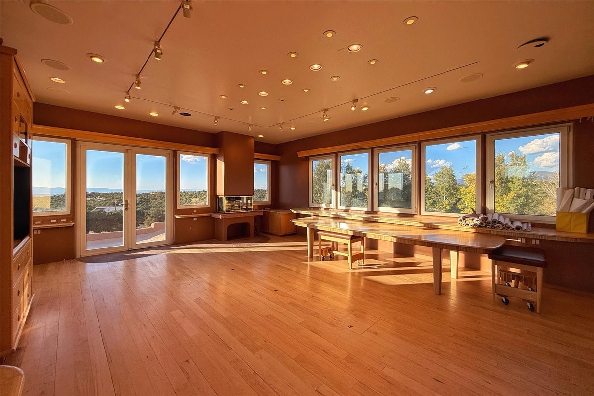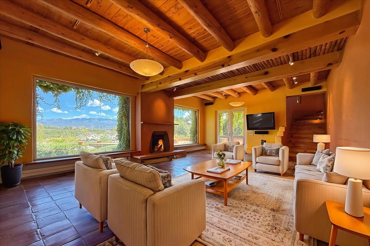 Tano Road at its Finest Tucked away on 11.9 wooded acres, this remarkable adobe estate feels worlds apart--yet remains close to all that makes Santa Fe extraordinary. With a 4-bedroom main house and a separate 2-bedroom casita, the property unfolds as a private retreat for gathering, reflection, and creativity.Anchoring the main level is a welcoming kitchen designed for connection, opening to a portal that overlooks an aspen-lined lawn, a serene pond, and sweeping views across the Sangre de Cristo and Jemez Mountains. Picture windows fill the living room with light, while an office, den, and three-bedroom guest wing provide space for every rhythm of lifework, rest, and hosting.Above, the owner's suite is perfectly placed to capture the views and includes a beautifully appointed bath and an airy studio/office. The nearby casita is equally inviting--offering privacy for guests or a quiet escape of its own.Rare, inspiring, and full of possibility--this is a Santa Fe property ready to be reimagined for its next chapter.