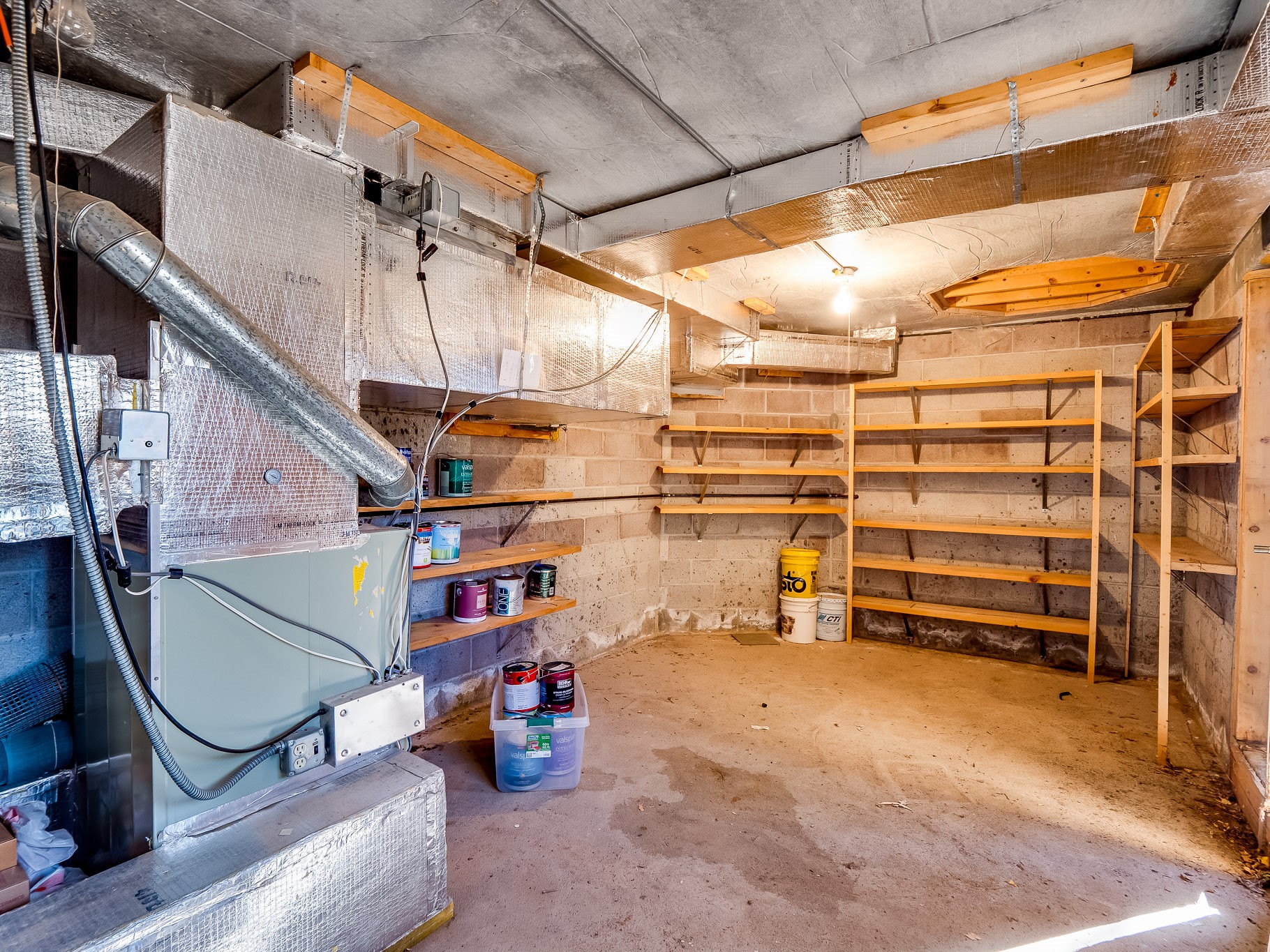 Perched on the canyon in North Mesa, this custom modern adobe home is a rare architectural offering that seamlessly blends natural materials, thoughtful design, and breathtaking surroundings. Character and craftsmanship are evident at every turn, with expansive canyon and treetop views. From the moment you step through the front door your'e greeted with a long, dramatic hallway setting the tone, featuring wood-planked vaulted ceilings, brick flooring, floor to ceiling windows and a rich combination of wood plank and plastered walls that continue throughout the home. The living room carries forward the vaulted ceilings and is anchored by a wood-burning freestanding fireplace that serves as a striking focal point between the living and dining area, thoughtfully tying the spaces together. The kitchen and family room form a bright, open living space with wood-beamed ceilings, abundant windows, and sliding doors that lead directly to the deck. The family room offers a custom wood built-in cabinetry and a gas freestanding fireplace. The kitchen features light-toned wood cabinetry, hard surface counters, and a peninsula island with bar seating, perfect for casual meals or entertaining. Just off the kitchen is a guest bath with a single-sink vanity and a tiled walk-in shower. This level also provides access to the two-car garage, which includes a connected green room. Upstairs, is fully carpeted and offers two bedrooms. A guest bed and the spacious primary suite that feels luxurious and serene, highlighted by a kiva fireplace and a dedicated seating area. There's a large closet and a washer and dryer for added convenience. The generously sized bathroom is shared between the two bedrooms and includes a deep jetted soaking tub, a walk-in shower, and two separate single-sink vanities. Outdoor living is truly exceptional, with a massive composite deck offering multiple areas for entertaining and taking in those canyon views. Book your tour to experience this home for yourself!