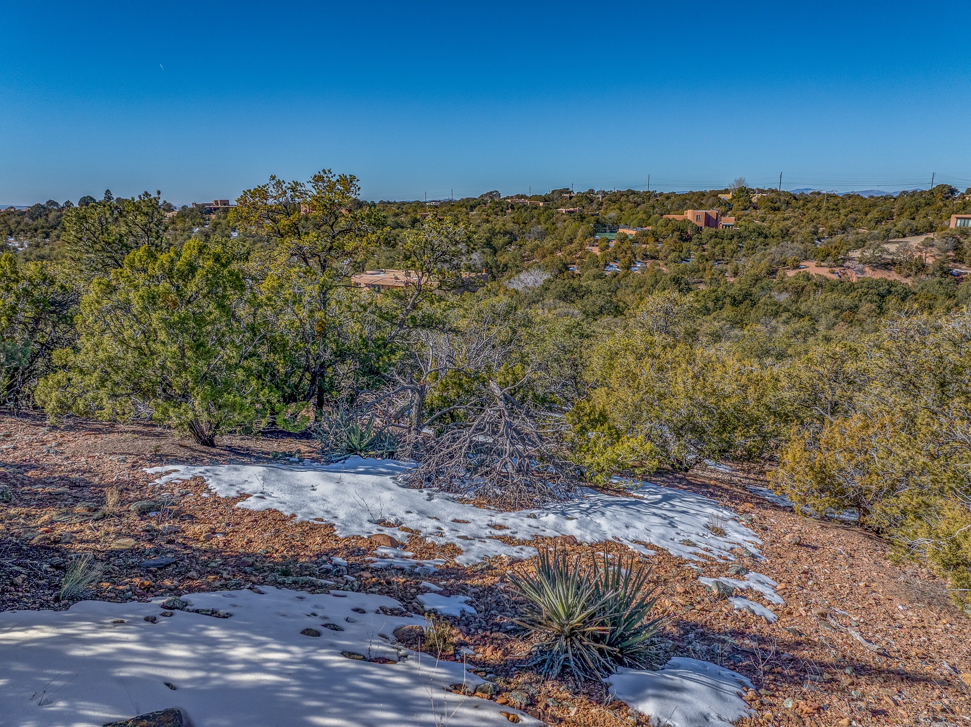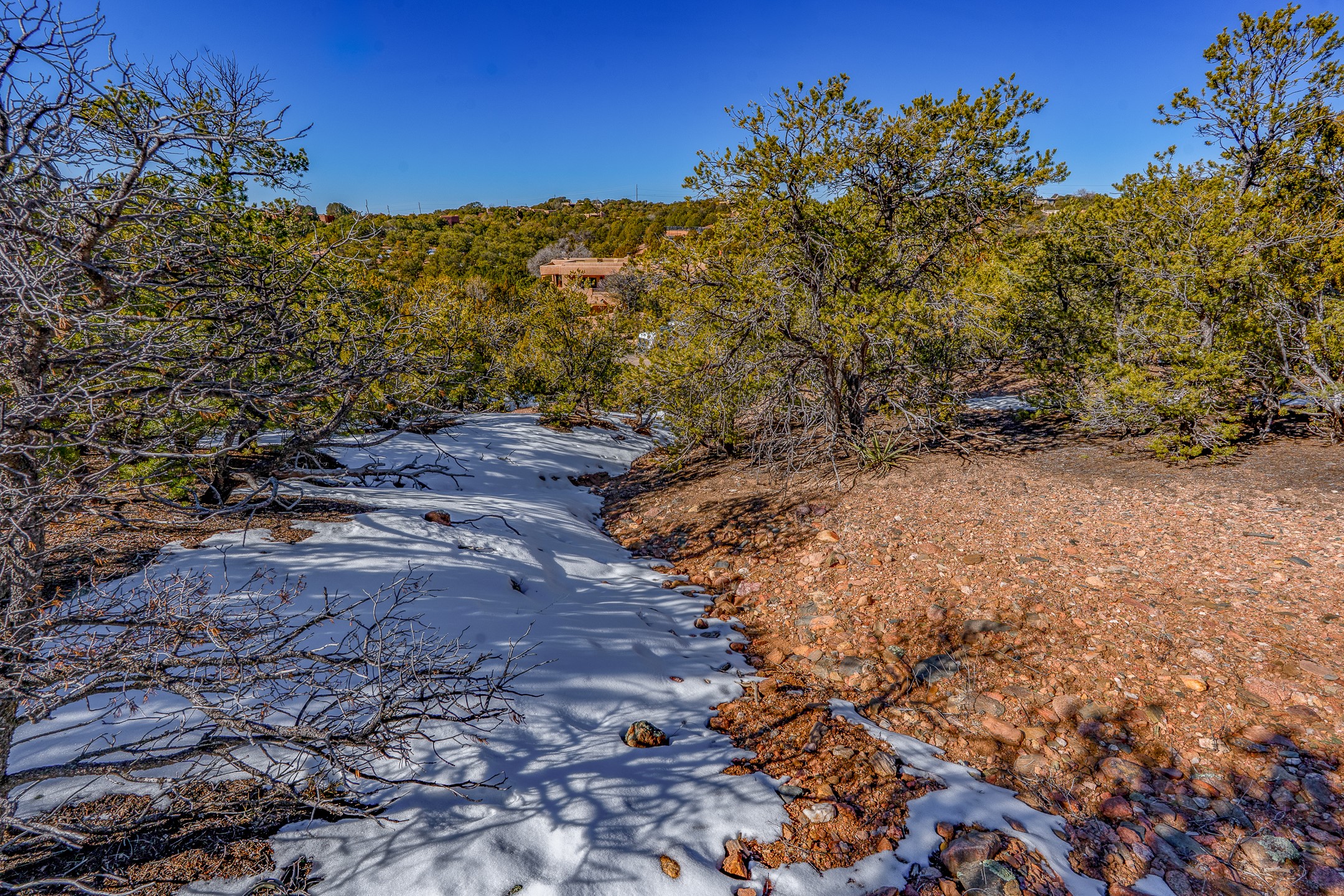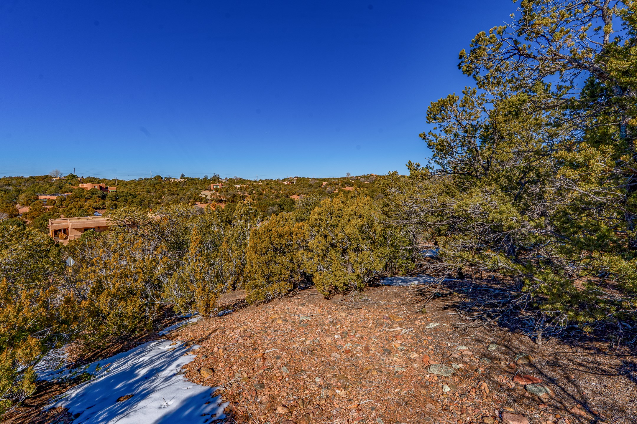 Beautiful, tree-covered North End lot located just off prestigious Barranca Road in the Cerro de Piedrasubdivision, offering reasonable covenants. Paved roads and quick, easy access to downtown Santa Fe.Utilities are available at the street; septic required. The property features ample flat, buildable areasand enjoys views of city lights as well as the Sandia and Ortiz Mountains. An ideal opportunity to buildyour Santa Fe dream home in a prime location.