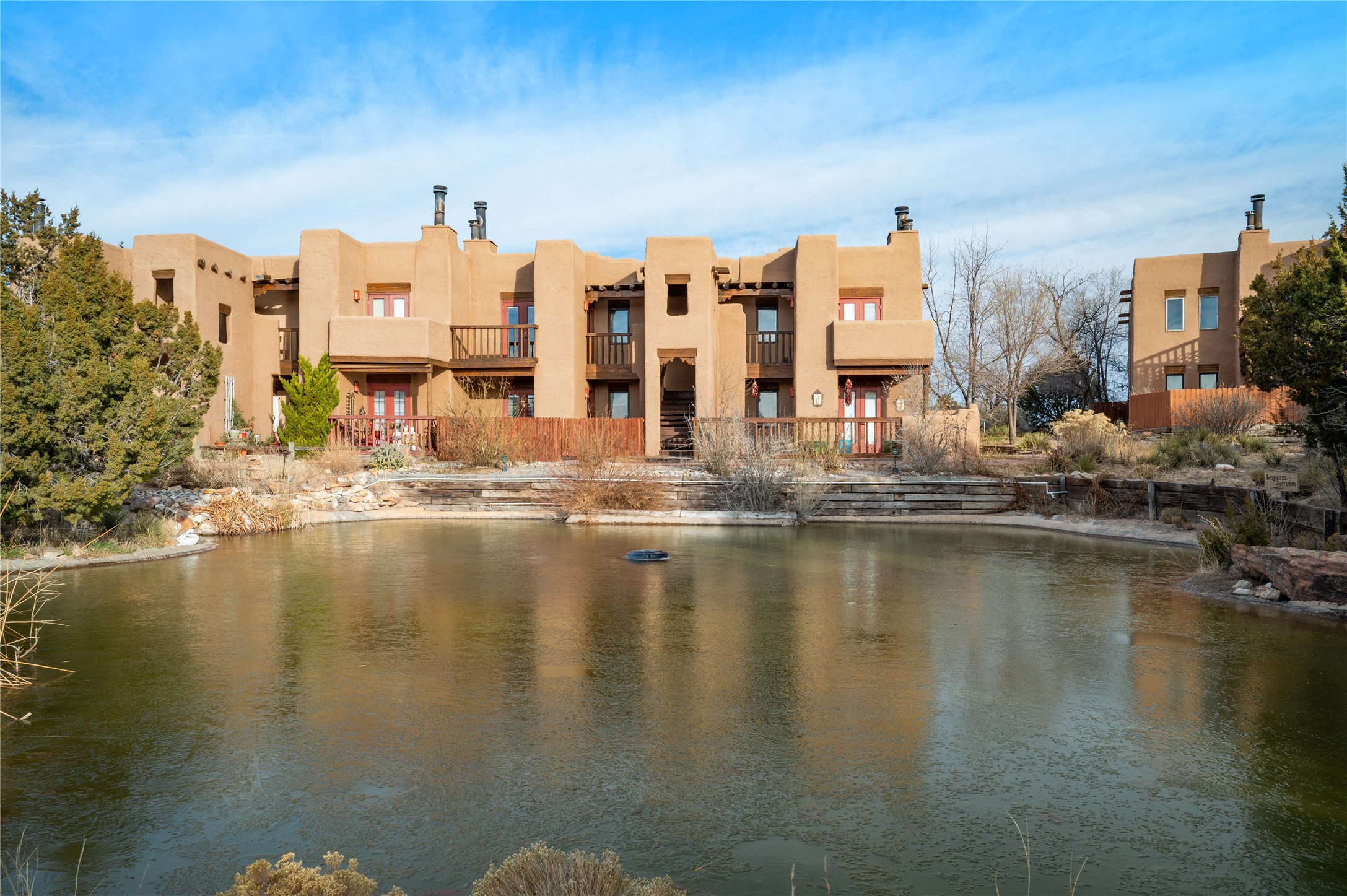 Resort-Style Living at Tierra de Zia! This handsomely furnished unit offers relaxed Santa Fe living with granite countertops, hardwood cabinetry, and a stainless-steel appliance package, including a built-in microwave. The spacious bath features an updated shower and space for an HOA-approved stacked washer/dryer. Enjoy a private balcony with caf table and grill--perfect for everyday living.The Tierra de Zia community features landscaped ponds, walking paths, community gardens, a heated pool, sauna, BBQ area, gated access, and private/guest parking. Pet-friendly with dog paths, and ideally located near Ragle Park, shopping, dining, and downtown Santa Fe.