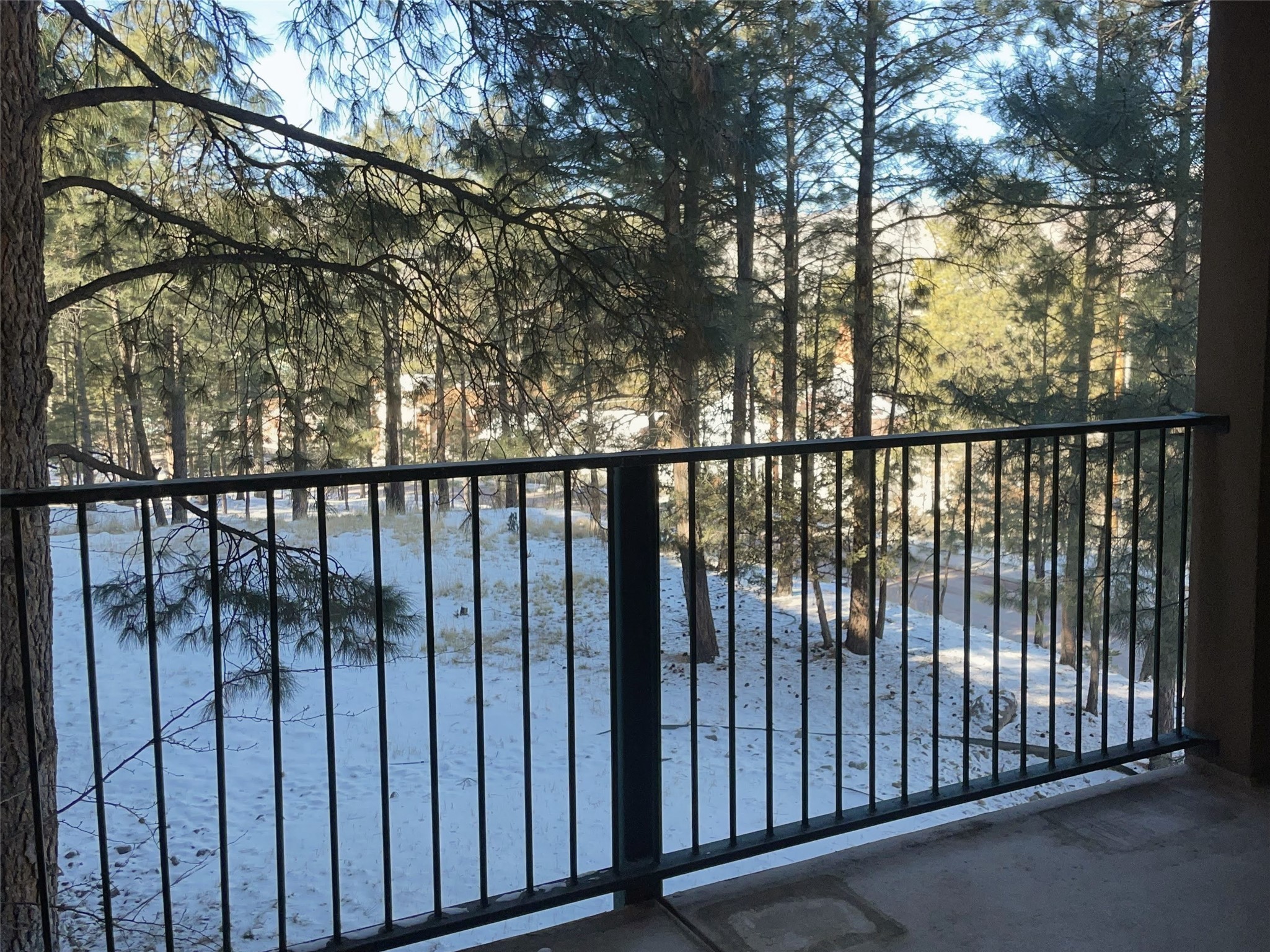 Don't miss this very nice Oppenheimer condo located on the ground floor. This unit is located at the end of a peaceful hallway and offers a private balcony overlooking the pines. Conveniently positioned near the large lobby area, it provides easy access to the elevators, exercise rooms, patios, parking, and recreation areas. The primary bedroom features a comfortable three-quarter bath and a large walk-in closet. The condo community amenities include multiple entertainment spaces, a commercial kitchen, outdoor space, and underground parking. Condo comes with one parking space, additional parking space and storage unit available for rent. There is an optional pet fee. This condo is close to downtown for easy access to the Senior Center, Mesa Public Library, Aquatic Center, Fuller Lodge, Ashley Pond, coffee shops, restaurants, shopping, and open space.