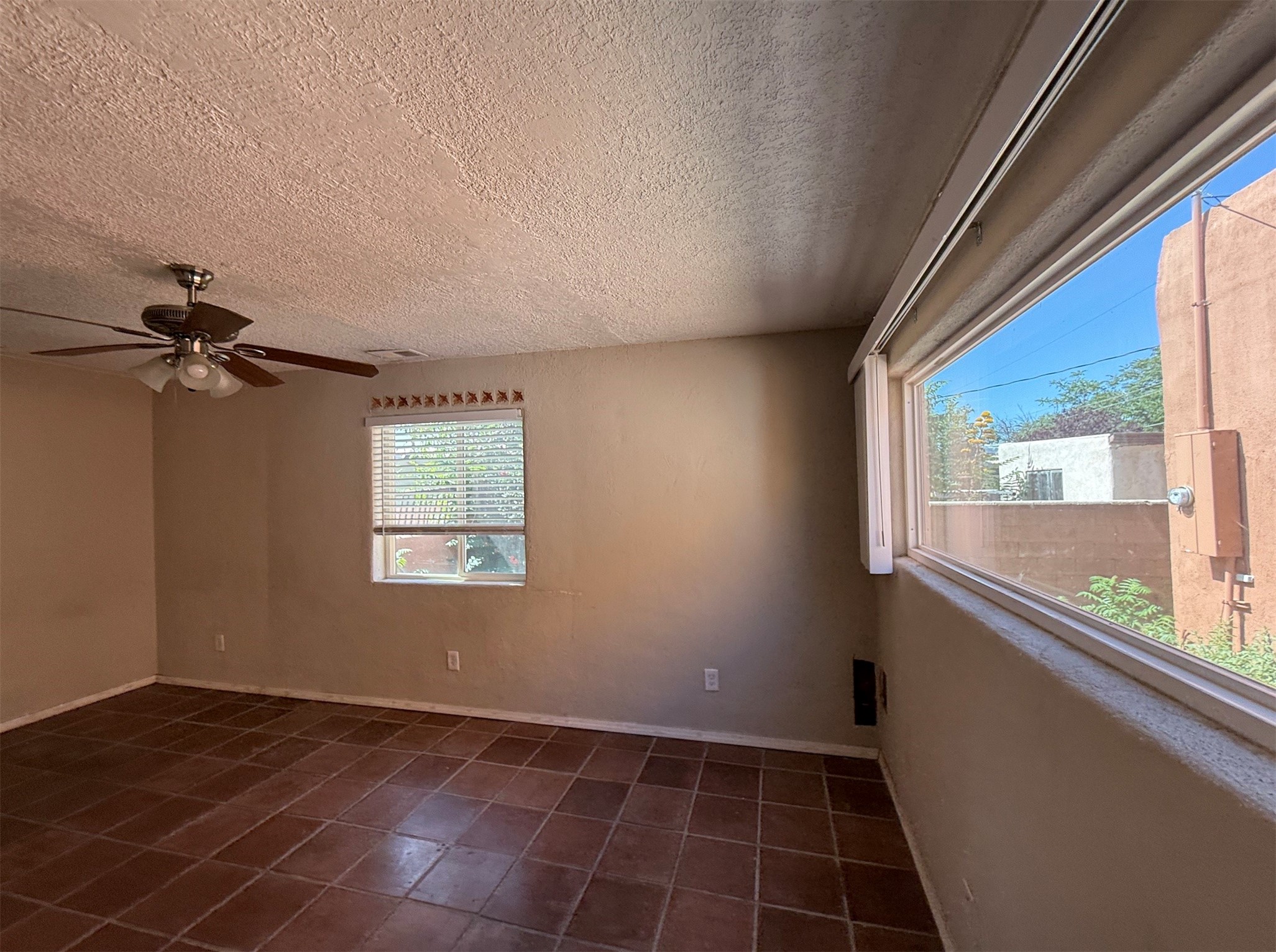 Authentic Pueblo-style home in Santa Fe showcasing traditional Southwestern design, including wood vigas and a classic kiva fireplace. This two-story residence offers 3 bedrooms and 2 baths with warmAuthentic Pueblo-style home in Santa Fe showcasing traditional Southwestern design, including wood vigas and a classic kiva fireplace. This two-story residence offers 3 bedrooms and 2 baths with warm architectural character and functional living spaces. A large garage/workshop provides excellent storage or workspace, complemented by ample street parking for guests. Owner-occupant buyers only for the first 20 days of marketing. Buyer must sign an owner-occupancy certification.