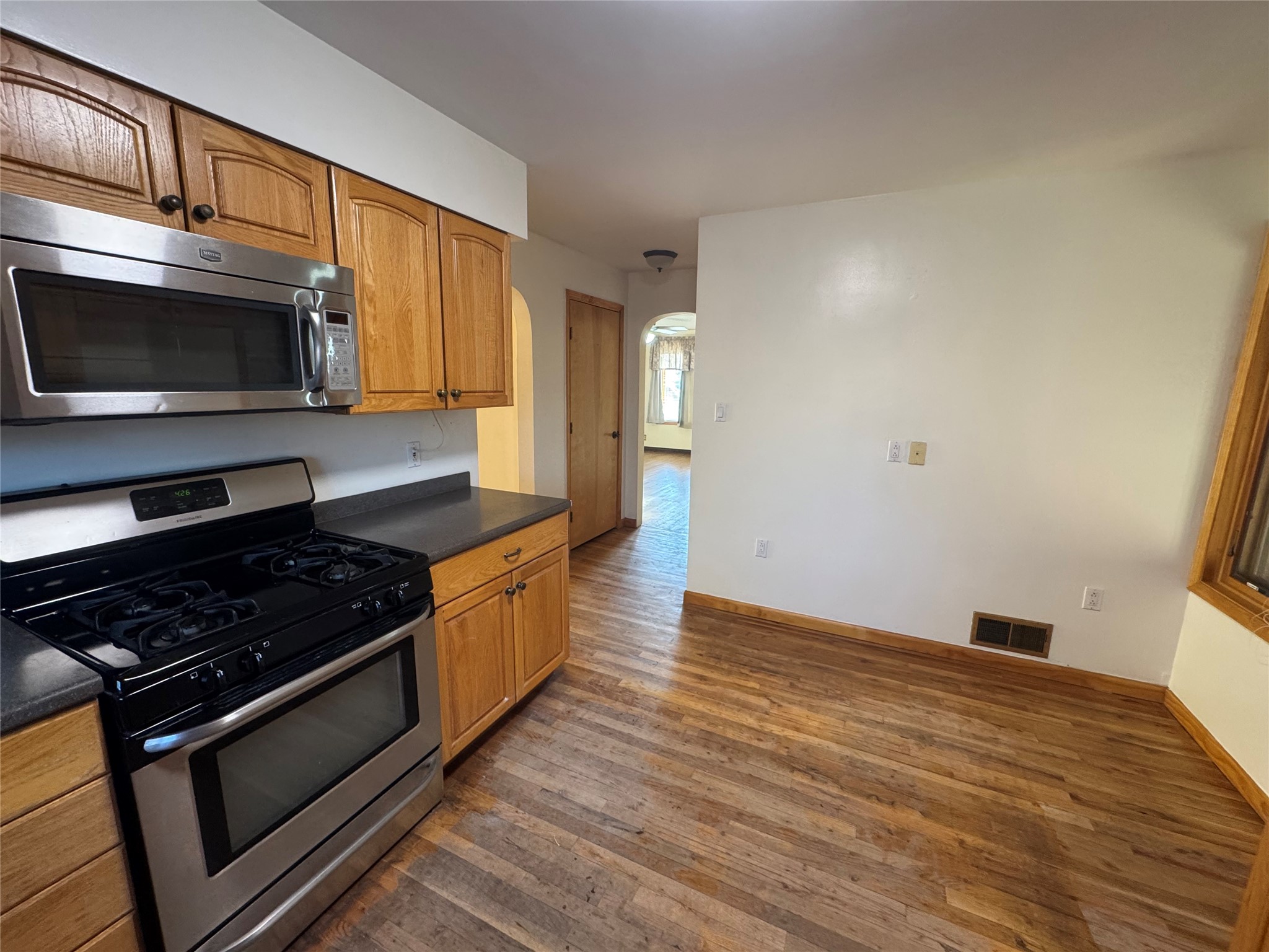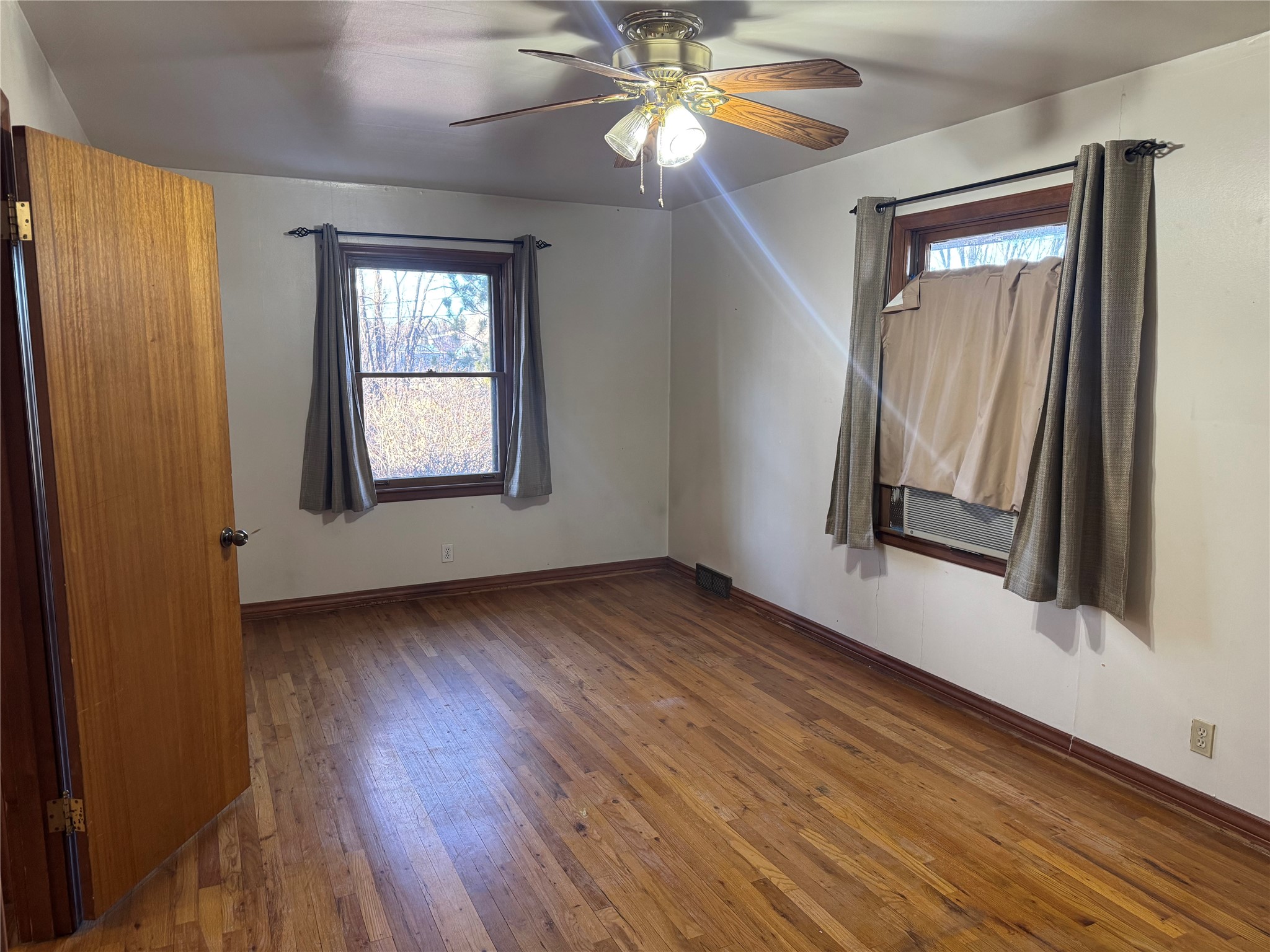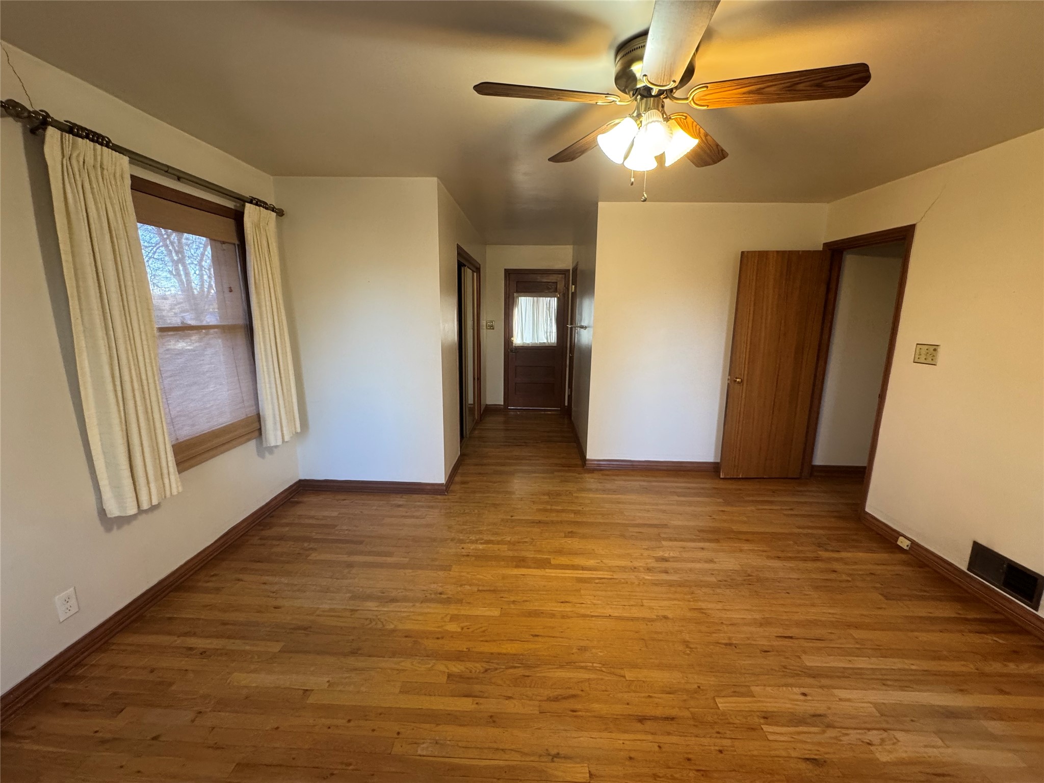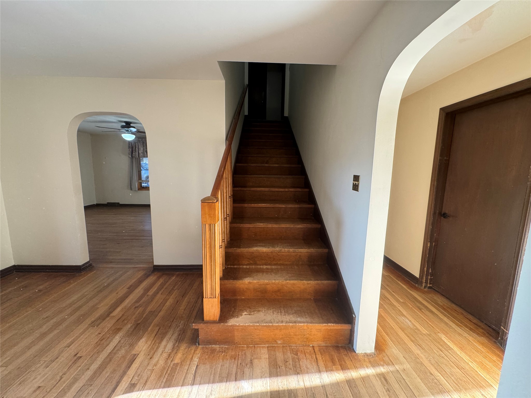 Welcome to this mid-century home with timeless architecture and comfort. Exterior is stone with accents of brick. Large front and back yard with big mature trees and semicircle entry and exit driveway. Inviting and spacious living room with fireplace, wall bookshelf and large picture window facing the west. From living room enter into a green or sun room facing the east and backyard. A dining room sized to host gatherings or a growing family, near a lovely kitchen. Four large bedrooms with great closet space in each. Three bedrooms are upstairs with two bedrooms sharing an enclosed window patio with door to stunning outdoor spiral stone and concrete staircase to the front yard. 2 bathrooms, one on main floor and one upstairs. A large breezeway room with beautiful wood ceilings attached to a one car garage. Well taken care of hardwood floors throughout majority of the home, large windows in each room allowing natural light from east to west. Basement allows for great storage, den or entertainment room. This house sits in an established and quiet neighborhood. City water, well water on property and surface water rights. Come take a look!