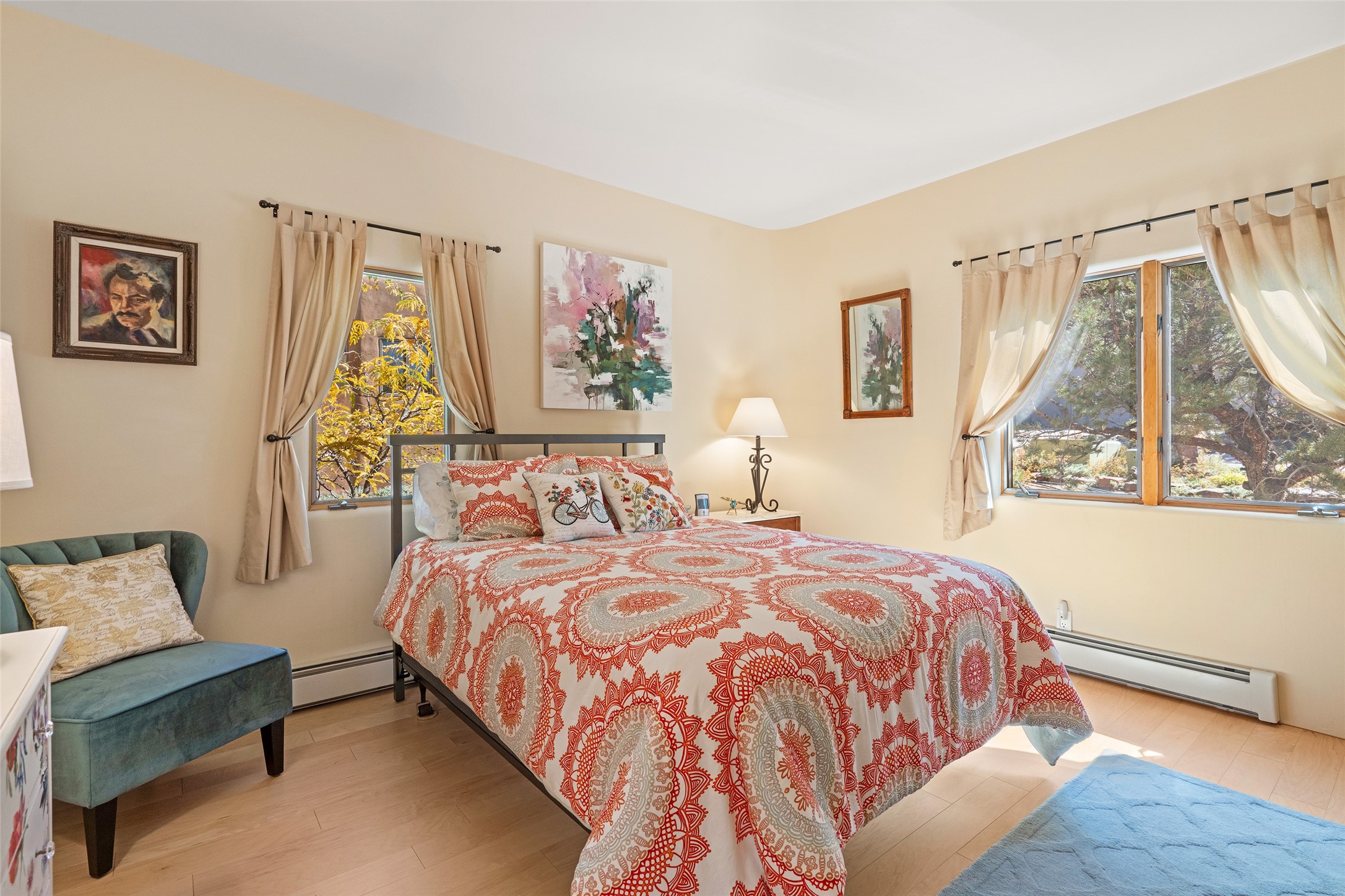 Immaculate Santa Fe Retreat in Estancia Primera! Nestled in the foothills just above the Santa Fe Plaza, this exceptional home offers the perfect blend of elegance, comfort, and location. Thoughtfully remodeled and meticulously maintained, this property is a true gem for those seeking refined Santa Fe living with modern luxury. At the heart of the home, the showstopping kitchen-- remodeled by Kitchens by Jeannine--is a chef's dream. Featuring premium cabinetry with abundant storage, high-end appliances including a Viking Range and Sub-Zero Refrigerator, and striking thick-slab Esprit de Santos granite countertops with elegant copper veining, this kitchen truly inspires. Light maple wood floors flow through the living spaces, where tall beamed ceilings, double patio doors, and a classic kiva fireplace create a warm and inviting ambiance. The elevated primary suite is a private haven, complete with its own fireplace and a beautifully remodeled bath. The oversized walk-in closet is a dream, offering generous storage and thoughtful design. Two additional bedrooms--one with its own cozy outdoor space and charming Santa Fe style bath--offer wonderful flexibility for guests or work-from-home living. Additional highlights include freshly repainted interiors, an immaculate garage with epoxy floors and new cabinetry, and a serene walking path just behind the home leading into downtown Santa Fe. Located in the sought-after Estancia Primera community, residents also enjoy access to a seasonal outdoor swimming pool and tennis courts. This immaculate foothills home combines Santa Fe charm, luxurious upgrades, and an unbeatable location--just minutes from world-class dining, galleries, and the historic Plaza.