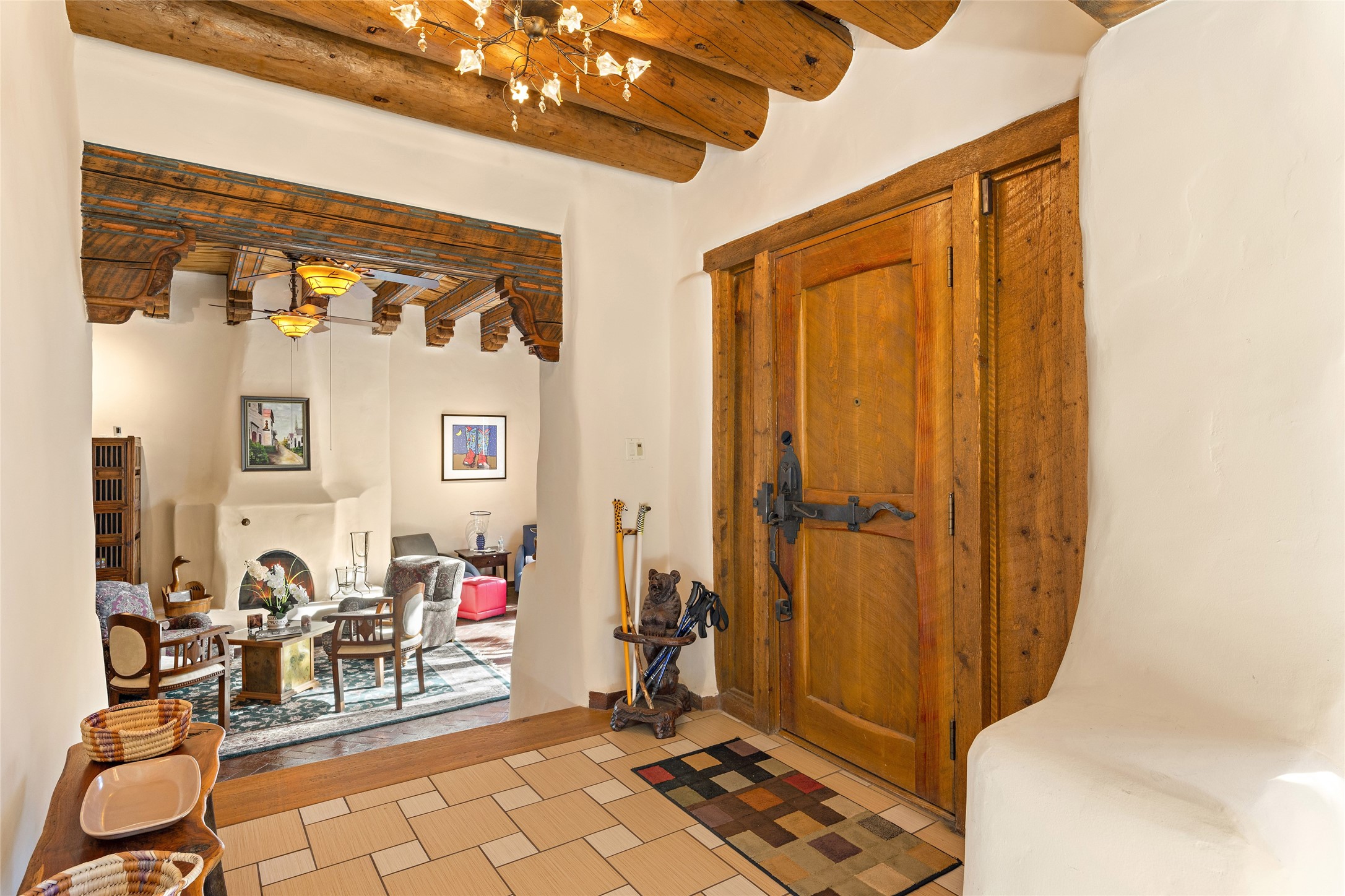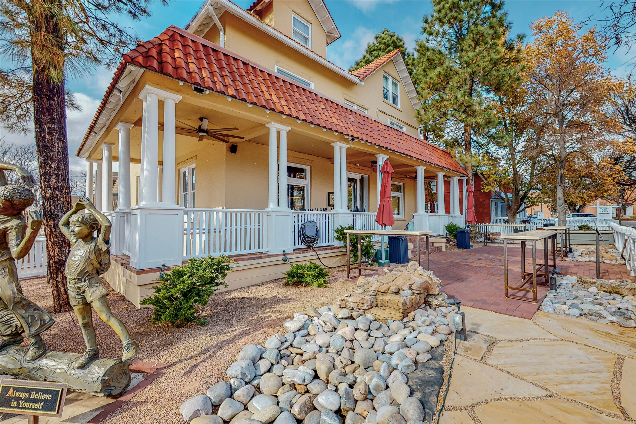 The Northeast of Santa Fe, within city limits, combines the pleasures of quiet living with the conveniences of location. On every tree-lined street are examples of newer, award-winning architecture and well-established, older adobes. In addition to the famous Plaza, this area includes all the land reaching up to the Jemez and the Sandias. Newer developments appear on your left and right as you climb in altitude into the tree-studded Sangre de Christos. Historically this area was for many years the center of life in Santa Fe. On one side of the Plaza stretches the Palace of the Governors. Constructed in the early 17th century as Spain’s seat of government, the Palace of the Governors in Santa Fe chronicles and documents the history of the city, as well as New Mexico and the region. Stroll down East Palace Avenue past galleries, shops and lovely hotels.