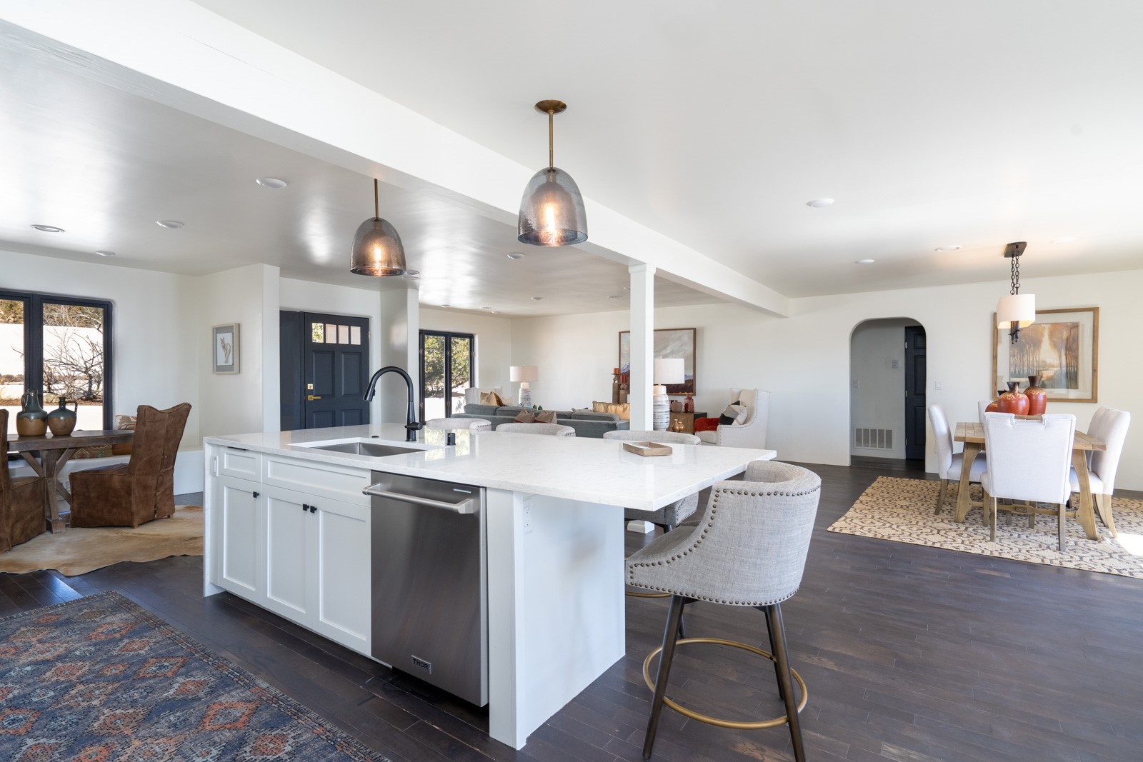 The northwest of Santa Fe within city limits includes one of the most affordable, family areas – Casa Solana. With beautiful mature trees, sidewalks and paved streets, Casa Solana has a real neighborhood atmosphere. Gonzales Elementary is within walking distance to all and the Casa Solana shopping area is a treat. The homes were built in the 1960’s by developer Allen Stamm and all include vigas, hardwood floors, fireplaces and solid construction. As you travel down West Alameda , the homes begin to spread out a bit. Horse farms dot the landscape. Newly-constructed homes appear on large open tracts. Any left hand turn takes you down to the Santa Fe River and any right hand turn delivered you into the hills above Santa Fe. Some lots in the hills offer 360 degree views, some a beautiful view of the Santa Fe city lights. Includes Zocolo and Santa Fe Estates.